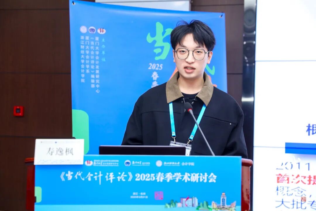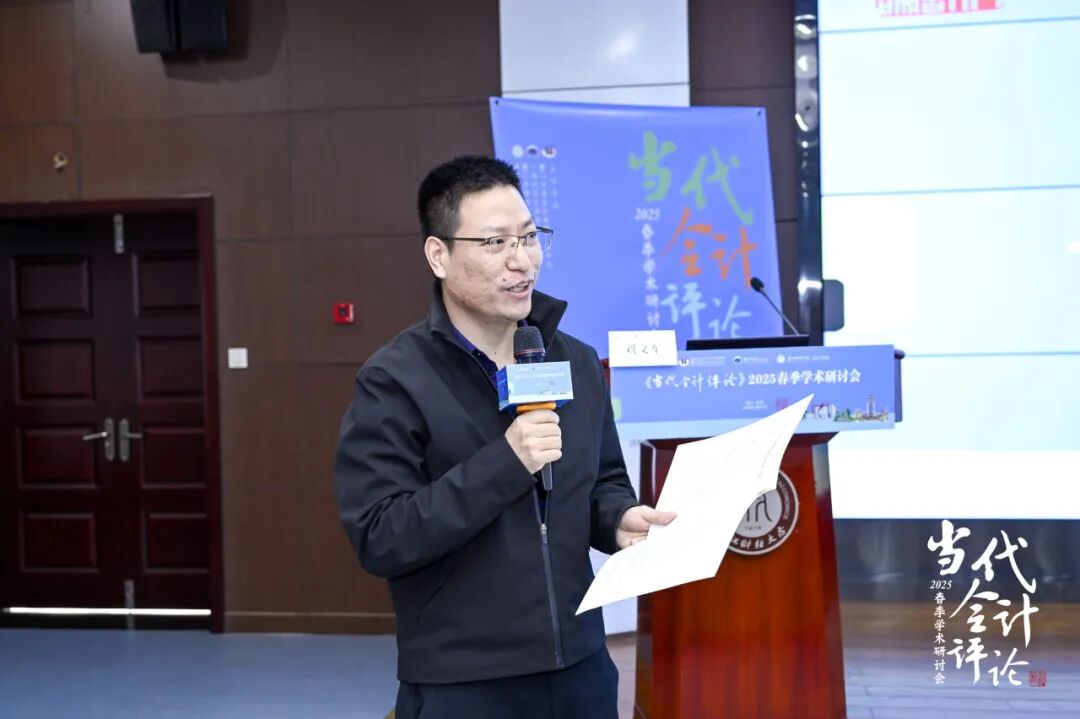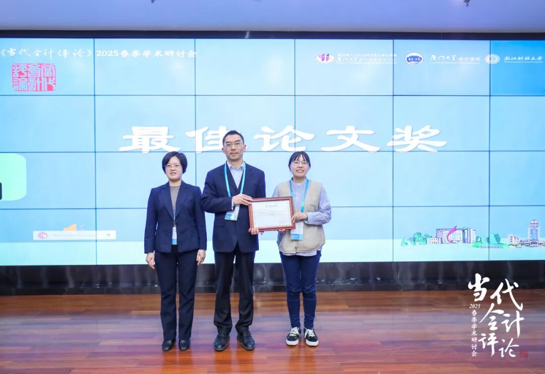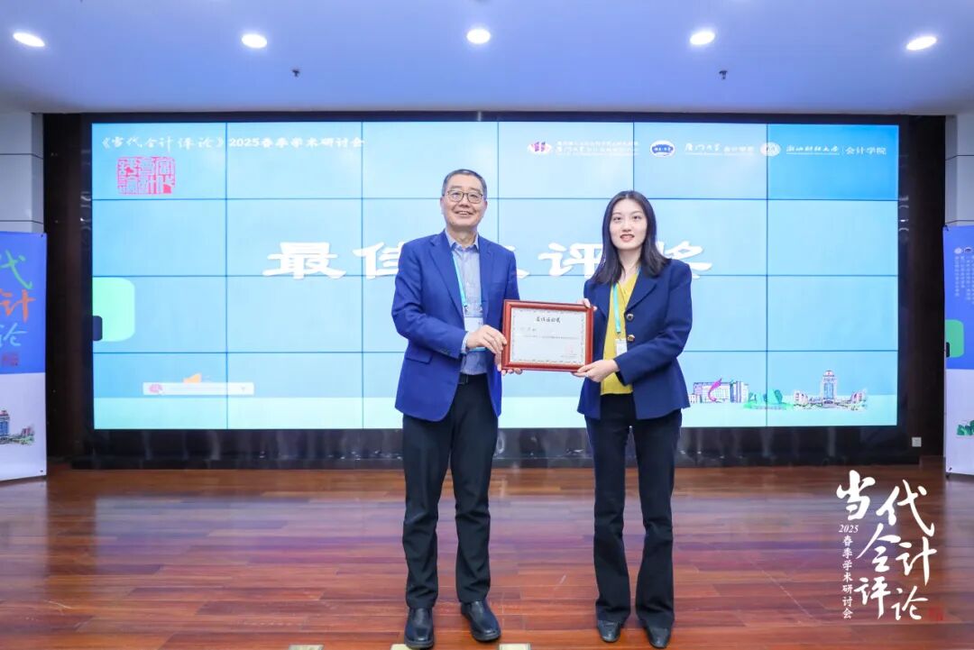 《当代会计评论》主编刘峰教授为最佳点评奖颁奖,最佳点评奖授予厦门大学何源助理教授。