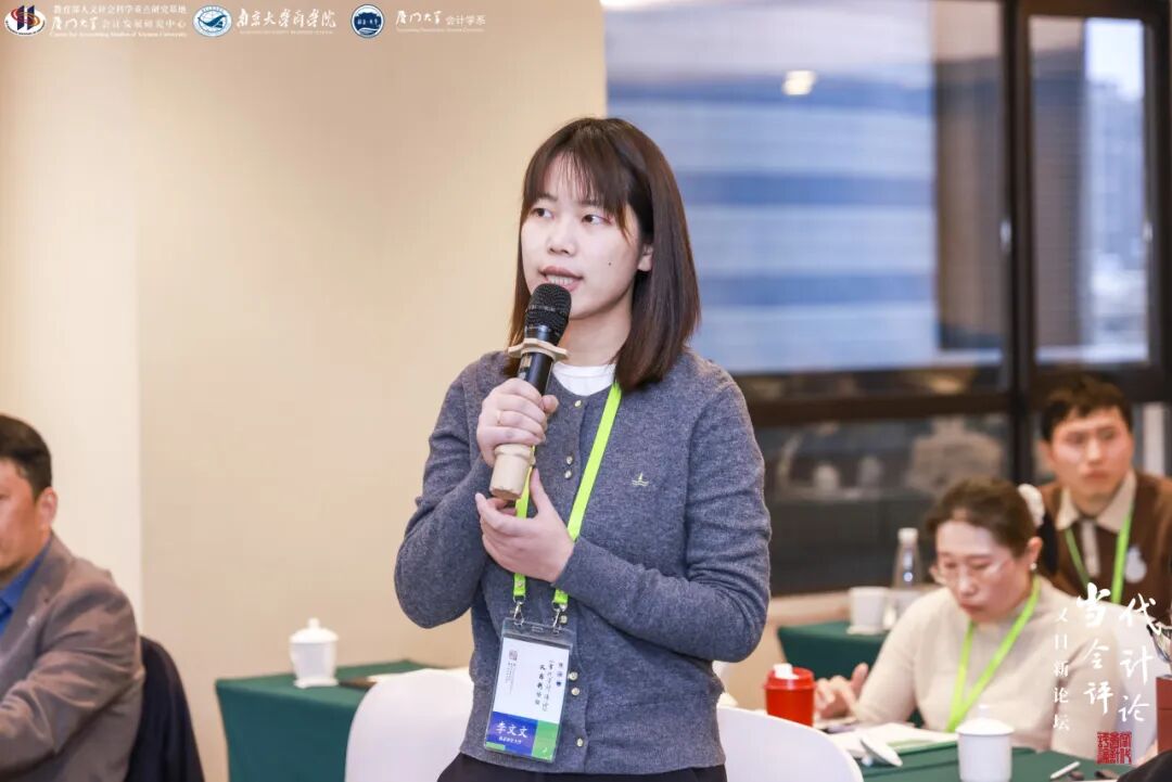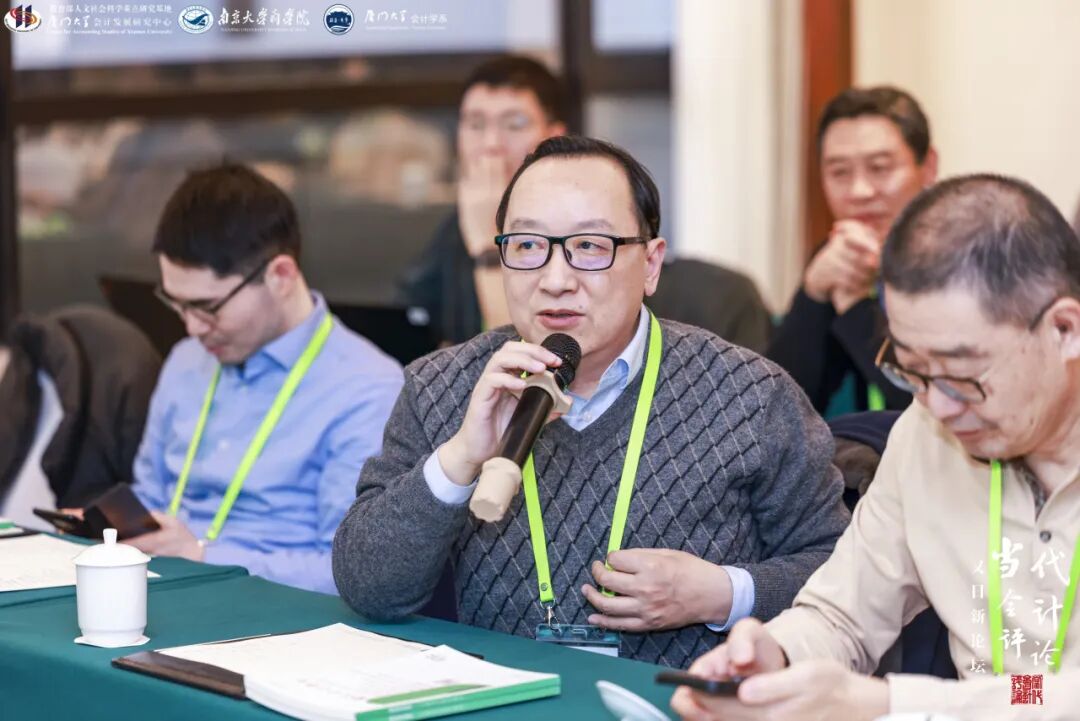 本次论坛荣幸地邀请到了上海交通大学夏立军教授、厦门大学刘峰教授、南京大学陈冬华教授、上海交通大学武凯文教授、河海大学新夫教授、南京财经大学李万福教授、南京审计大学贺建刚教授、南京审计大学李文文教授以及中兴新云陈虎博士等知名学者、实务专家作为点评嘉宾,对这两篇青年学子主笔的论文进行了深度点评。这些专家凭借其深厚的学术造诣和丰富的实践经验,从文章设计、理论框架、实证结果以及文章贡献等多个维度,对这两篇青年学子的论文进行了全面且深入的点评。他们以成熟的学术思想和严谨的方法体系“雕琢璞玉”,为两位青年学子提供了极具建设性的修改意见,助力他们完善论文,提高研究能力。