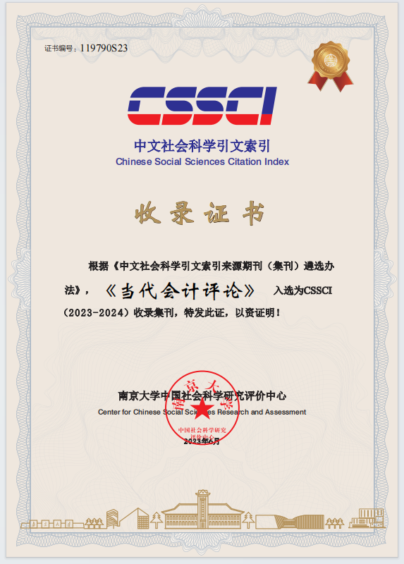 《当代会计评论》连续第五次入选CSSCI收录集刊,获得了中国会计学领域前沿学术的标准认可,离不开主编及执行主编团队、编委会和顾问委员会的指导,匿名审稿专家、作者、读者和社会各界朋友的支持。在未来的发展征程中,该刊物将继续紧跟学术前沿,希望为我国会计研究提供一个“本土问题、科学叙事、激荡思想、凝聚智慧”的平台,着力扶持并推出学术新人原创成果,推动形成中国风格的会计学研究。